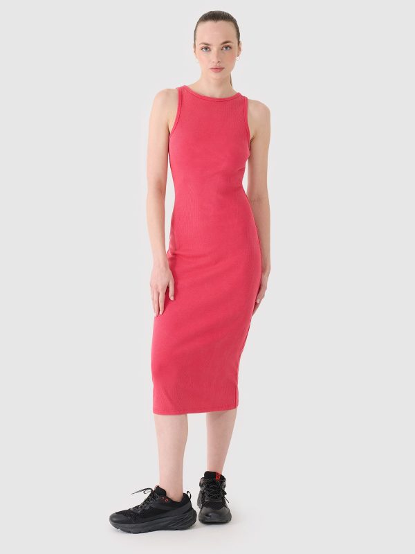 4F Sukienka z prążkowanej dzianiny damska – różowa XS