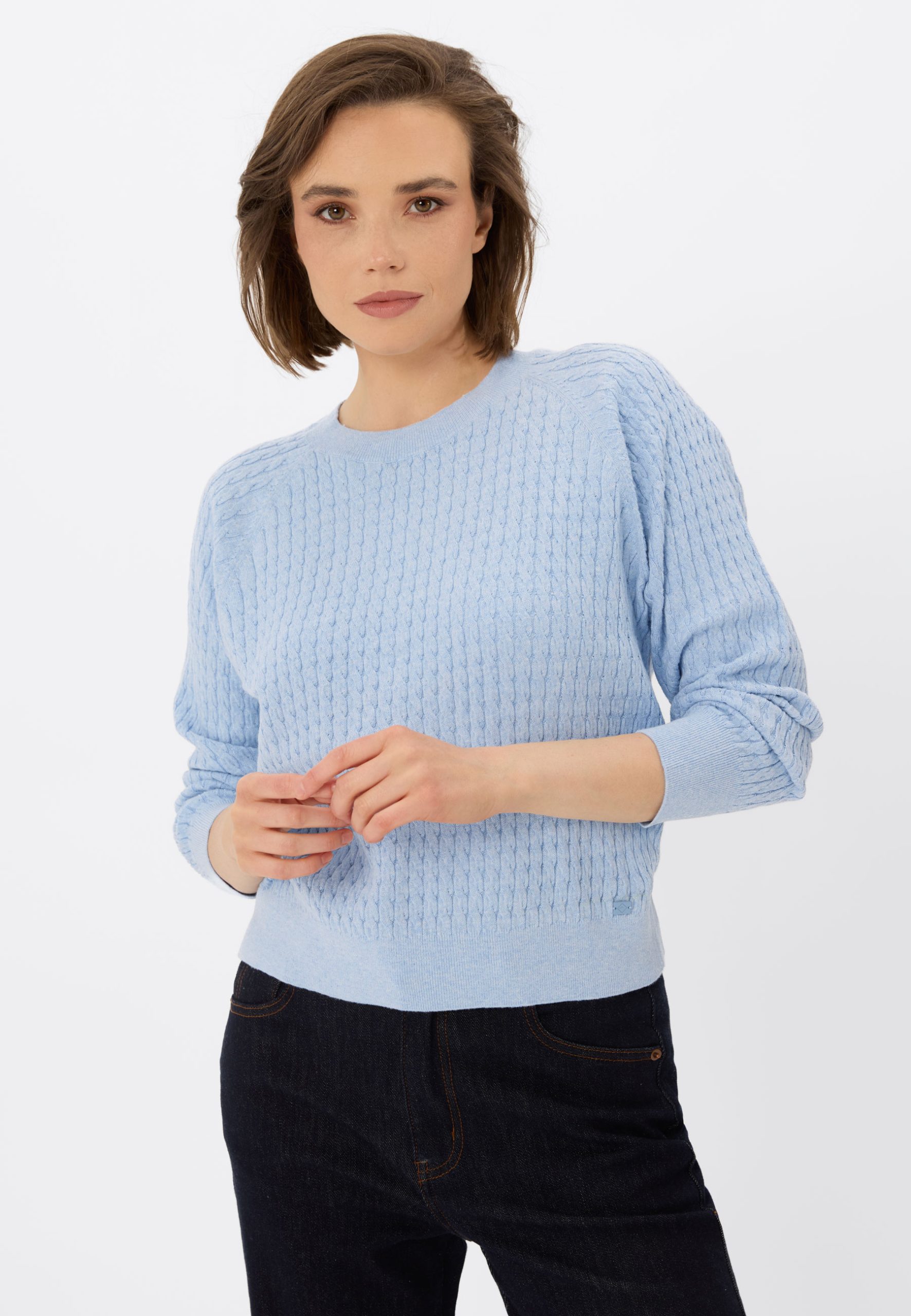 - Cechy produktu: naturalne włókna z warkoczowym splotem fason Regular Fit okrągły dekolt z szerokim ściagaczem raglanowe rękawy rękawy i dół wykończone prążkowanym ściągaczem detal Volcano Bawełniany sweter damski w jasnoniebieskim kolorzeDamski sweter S-KAMA jest idealny do stworzenia przytulnych, a zarazem stylowych zestawów