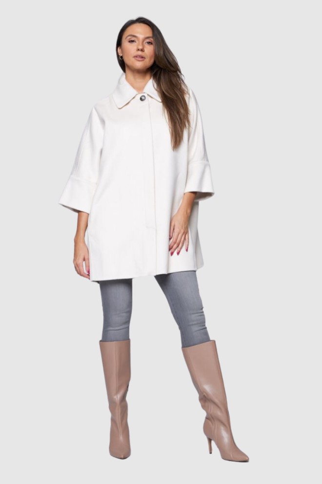 Wyjątkowy i nietuzinkowy Biały DIEGO M Wełniany płaszcz damski w kolorze ecru.