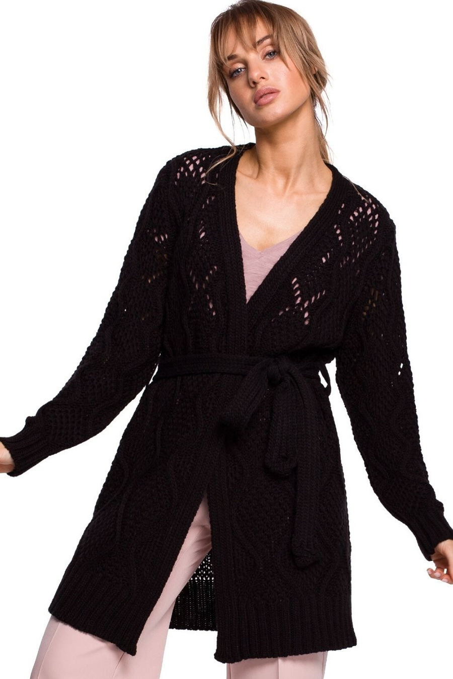 Długi kardigan ażurowy sweter, cechy i zalety: