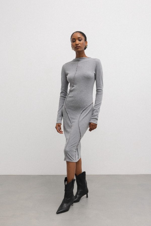 Dopasowana sukienka MAXI w kolorze CLASSIC GREY interlock- SLEEKNESS-M/L