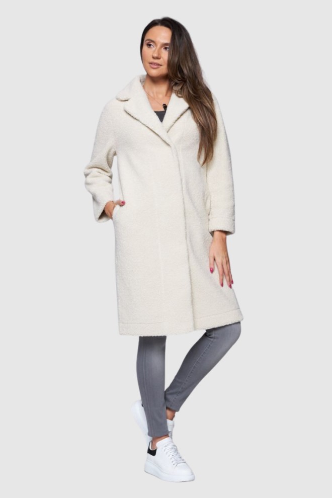 HETREGO Dwustronny płaszcz damski ecru Shannon, Rozmiar 38 EU - 42 IT