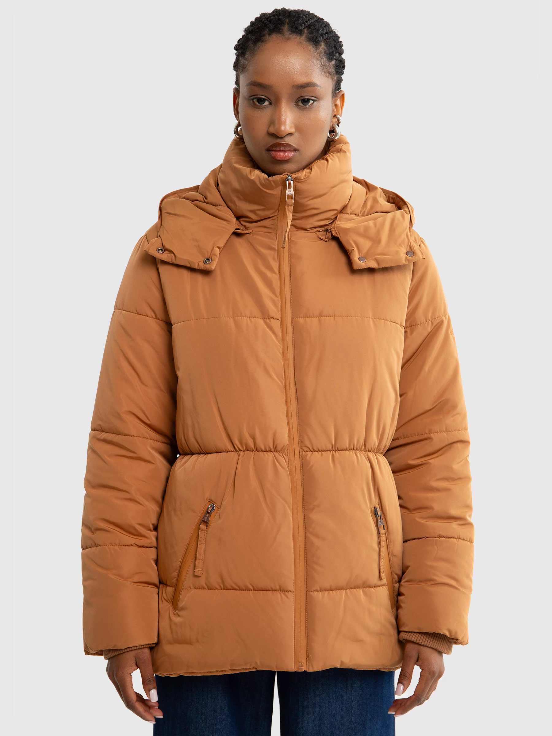 • Jedno jest pewne – nasza brązowa kurtka z kapturem damska pikowana Mirake 802 jest idealna na chłodne dni!