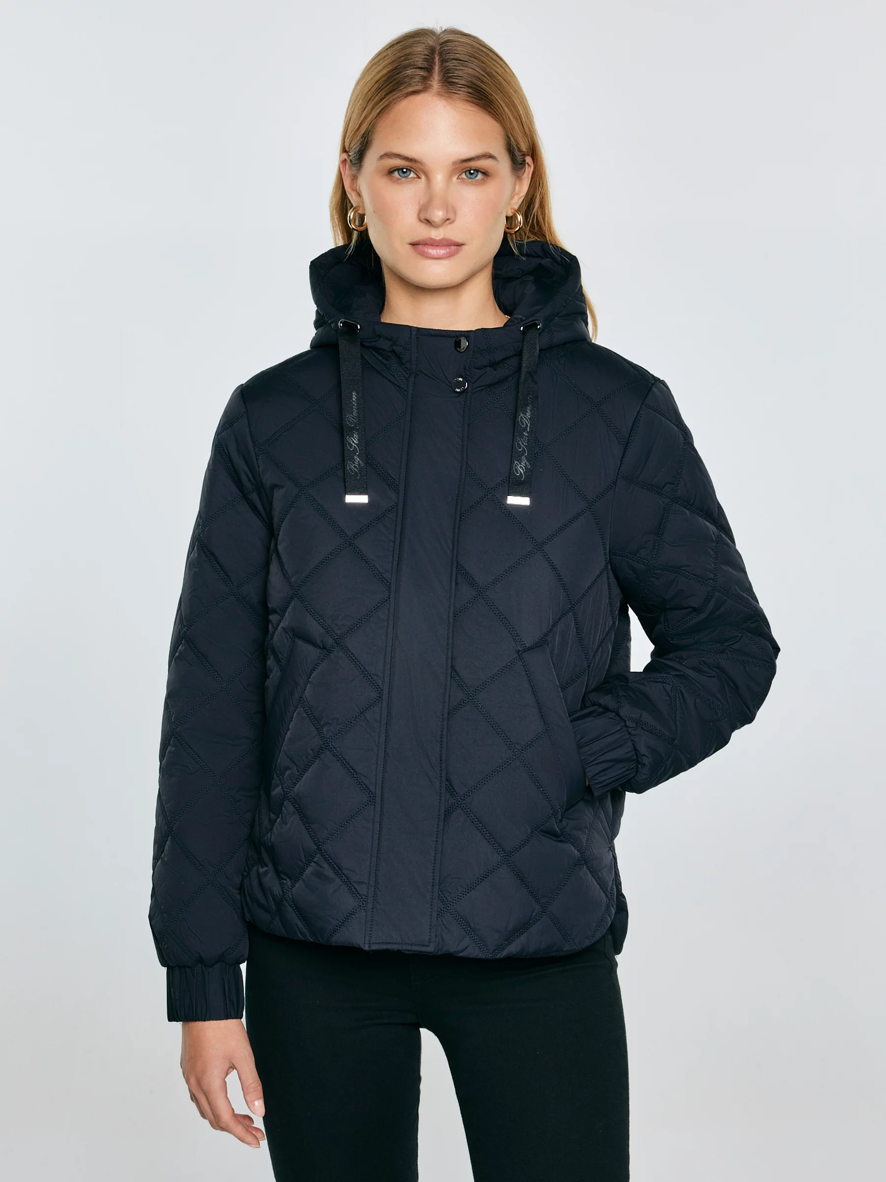 Kurtka damska pikowana z kapturem czarna Wynterina 906