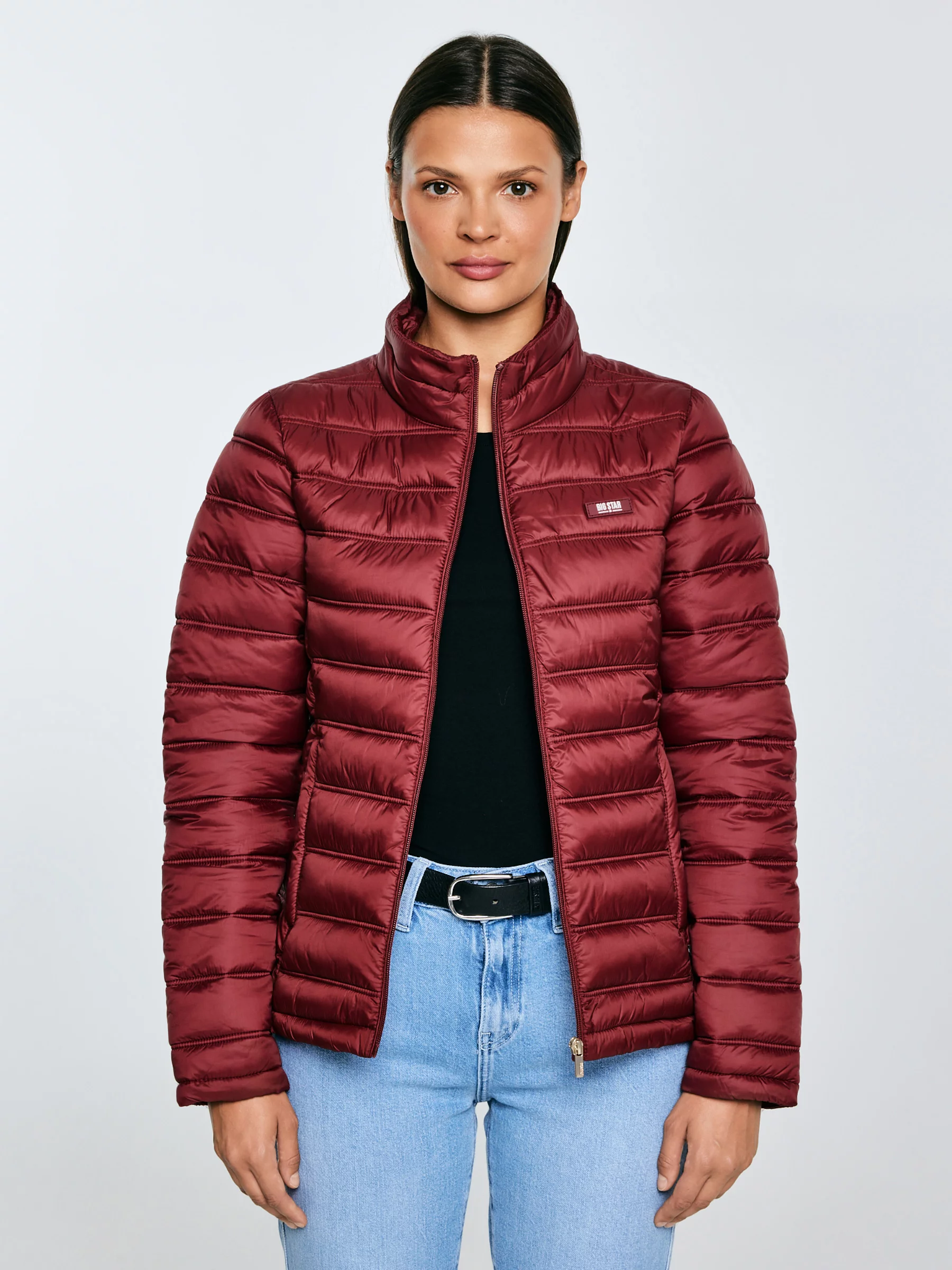 Kurtka damska pikowana z odpinanym kapturem bordowa Azeala23 604