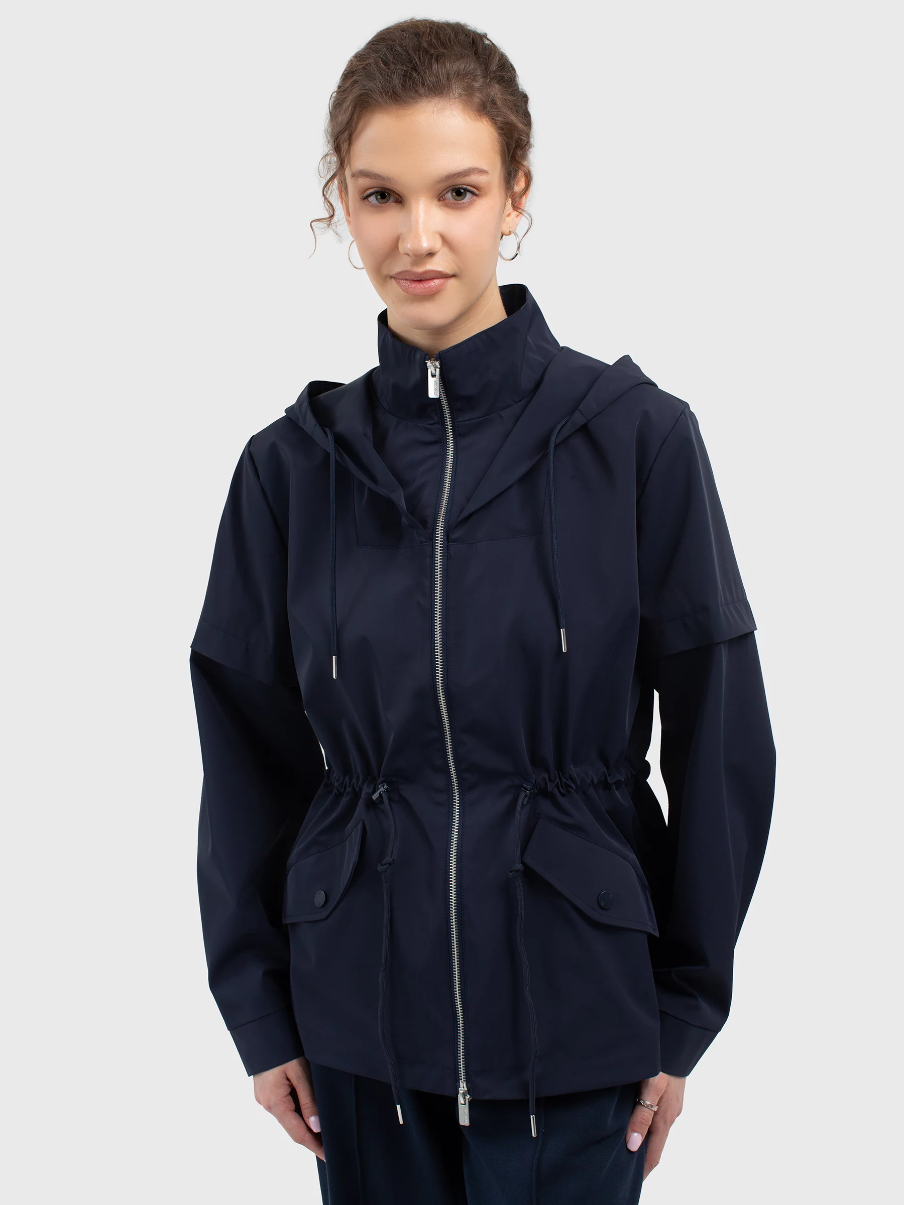 Kurtka damska przeciwdeszczowa z regulacją w tali granatowa Nafula 403
