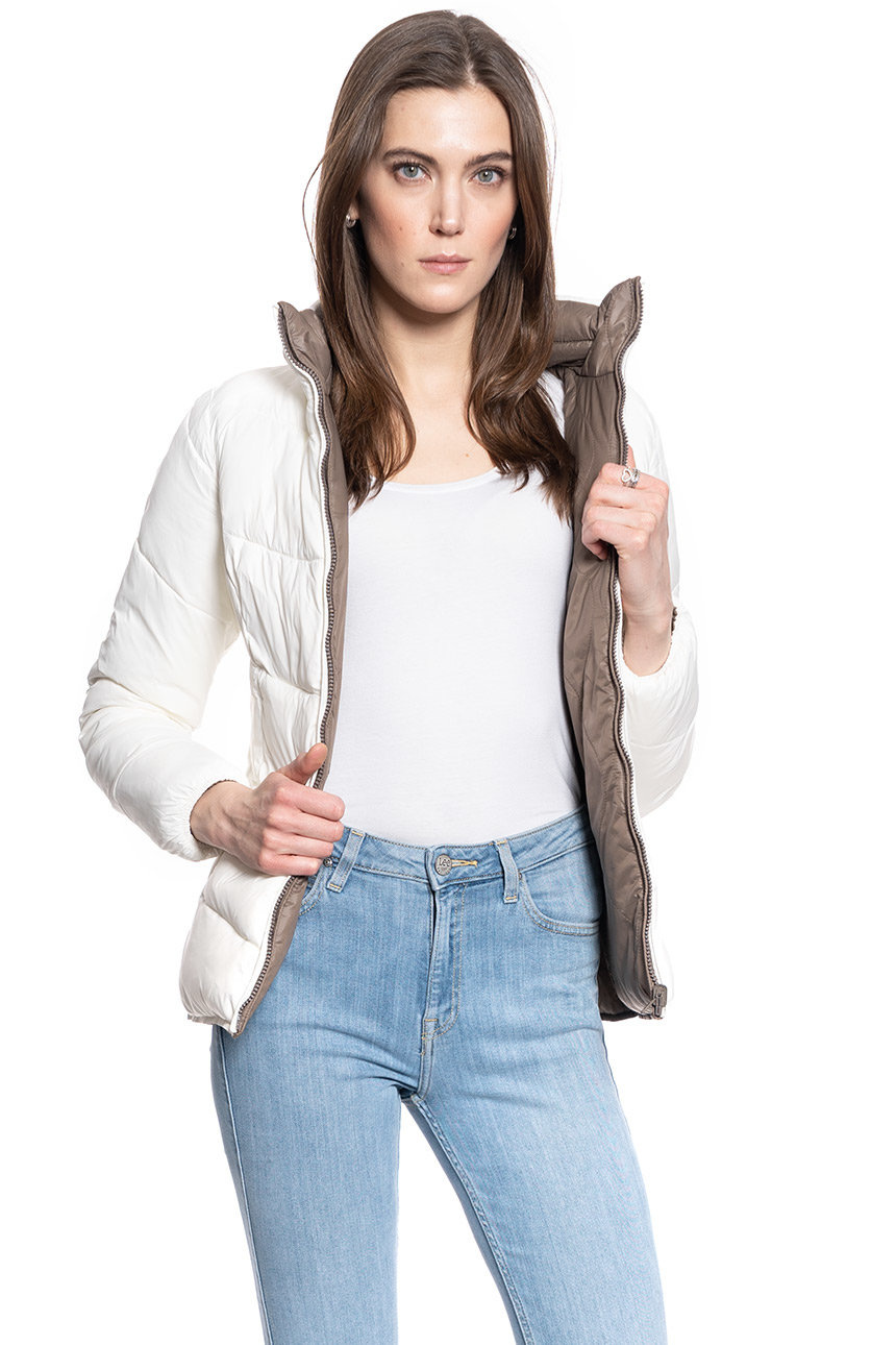 • Kurtka damska, dwustronna w kolorze białym i beżowym