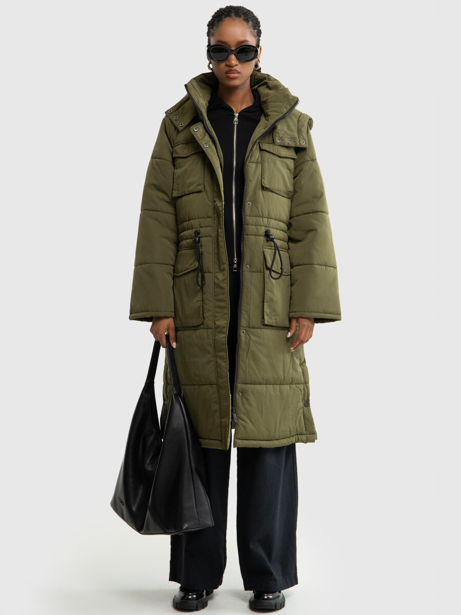 Wyjątkowy i nietuzinkowy Zielony Płaszcz damski pikowany khaki Zubinda 303.