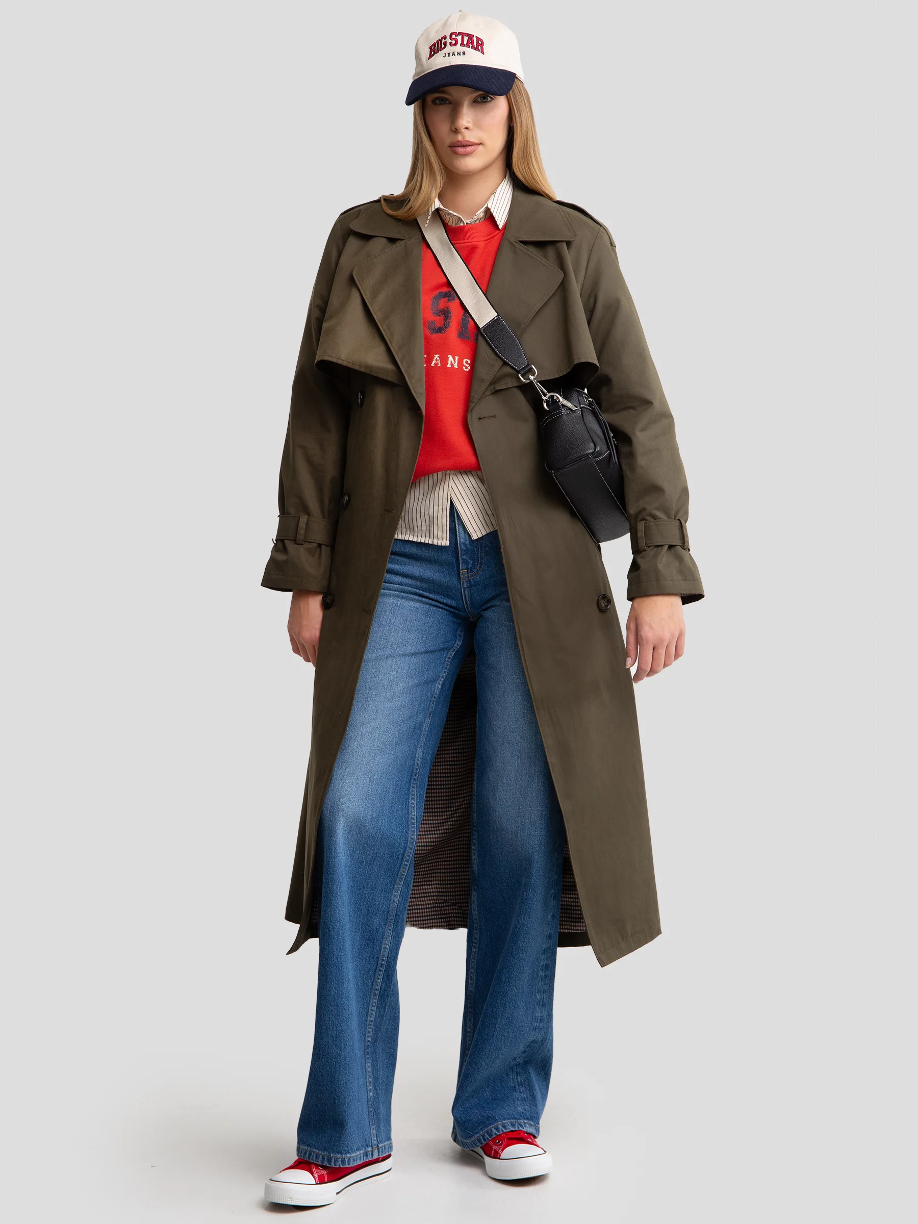 • Płaszcz damski khaki trencz Sigreena 303 to ponadczasowy element garderoby, który łączy funkcjonalność z klasyczną elegancją