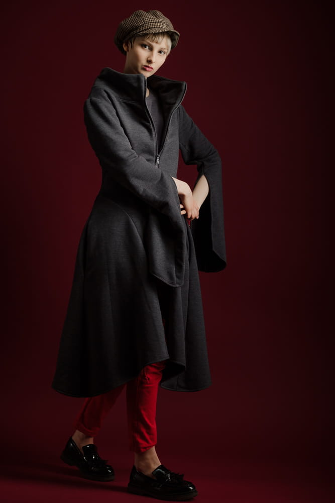 Wyjątkowy i nietuzinkowy n/a Płaszcz damski Wichrun grafit.