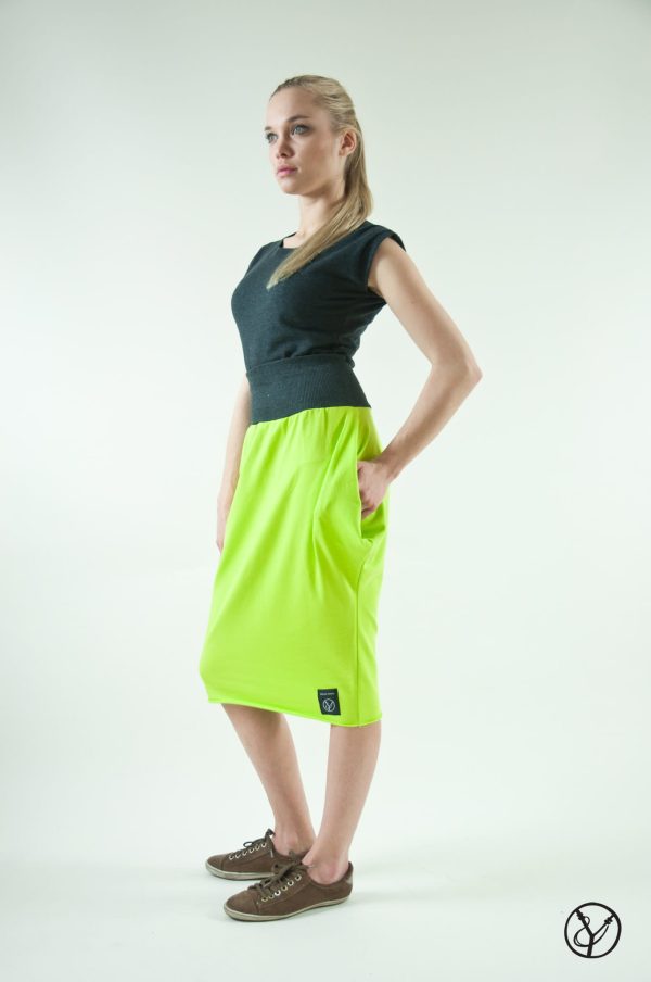 Spódnica z kieszenią limonka, cechy i zalety: