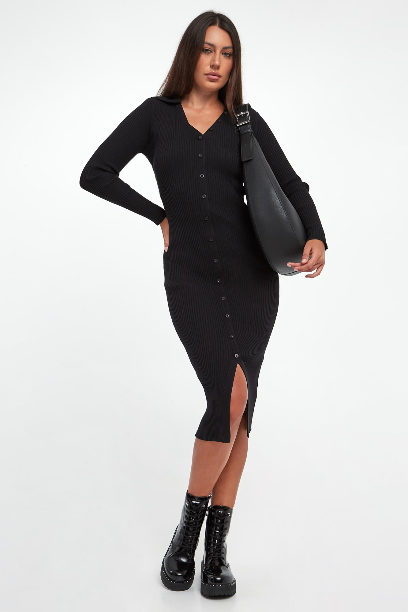 Sukienka prążkowana midi DKNY