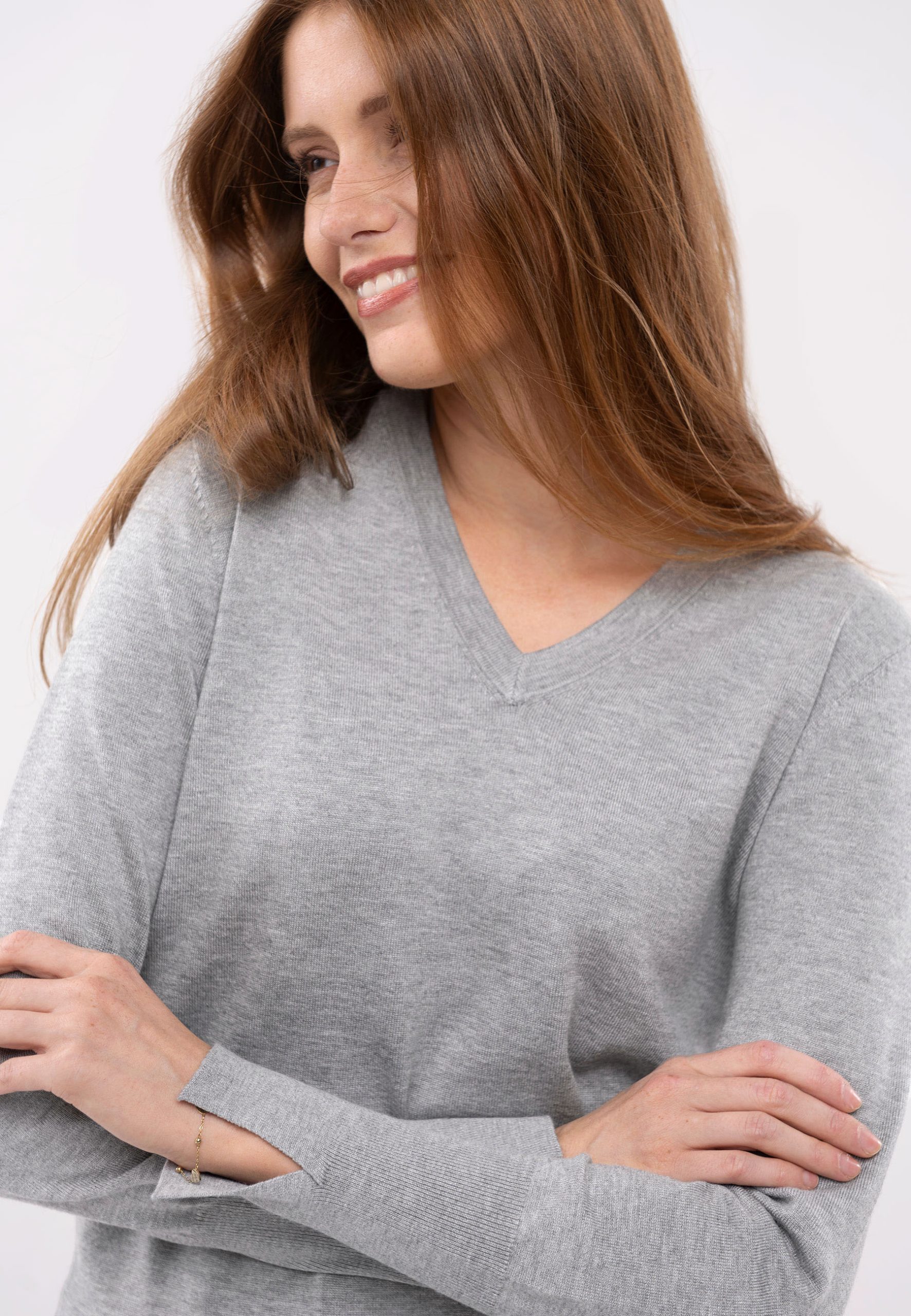 Sweter z dekoltem w, cechy i zalety: