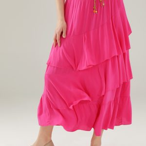 GŁADKA SPÓDNICA Z FALBANAMI 145-22604 FUXIA
